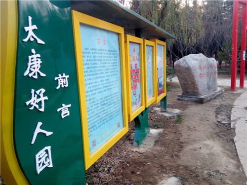為把好人精神鐫刻在太康發(fā)展和進(jìn)步的進(jìn)程中,把太康建設(shè)成為好人之城、文明之城、和諧之城、美麗之城、幸福之城,從2018年9月起,太康“好人園”經(jīng)過緊鑼密鼓地籌建,如今開園迎賓。好人園緊扣“好人”主題,以道德風(fēng)尚建設(shè)為主線,在休閑公園的基礎(chǔ)上,秉承“因地制宜、因勢利導(dǎo)”的原則,堅持寓教于園、寓教于景、寓教于樂,以小處著手、局部微調(diào)的手法,通過“好人步道”“好人亭”“好人樹”“好人大舞臺”“好人精神長廊”五大版塊,將道德風(fēng)尚高地建設(shè)與公園的整體風(fēng)格和功能定位完美結(jié)合。好人園兼顧了公園本身特色與文化傳播需要,利用林蔭小道,以石、亭、牌等基礎(chǔ)設(shè)施為載體,圖文并茂地展示太康近年來獲得國家和省級表彰的道德典型、身邊榜樣的先進(jìn)事跡,一步一景,隨景賦形。市民在游園過程中,潛移默化地接受“真、善、美”的教育和熏陶,激發(fā)人們見賢思齊,榜樣的引領(lǐng)作用不斷放大。