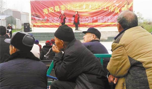 本報訊 (記者 侯俊豫 文/圖) 為扎實推進精準(zhǔn)扶貧工作,豐富農(nóng)村文化生活,11月27日至30日,縣委老干部局組織縣老干部藝術(shù)團赴四個幫扶村進行“文化惠農(nóng) 助力扶貧”慰問演出(如圖),為廣大群眾送去一份豐盛的文化大餐。