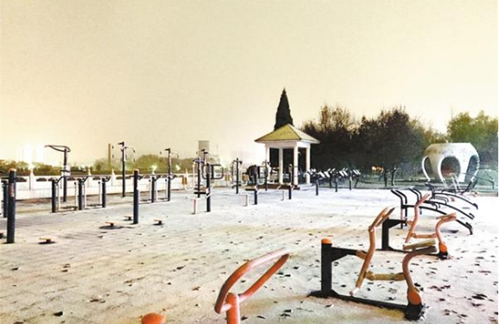 2018年冬天的第一場大雪,把周口市中心城區(qū)沙潁河風(fēng)景區(qū)裝扮得清新雅致,別有一番風(fēng)味?;ú?、綠植、雕塑、亭臺、環(huán)廊、步道乃至健身器材,在雪的映襯下,都顯得通透而有靈性,讓人欣喜非常。