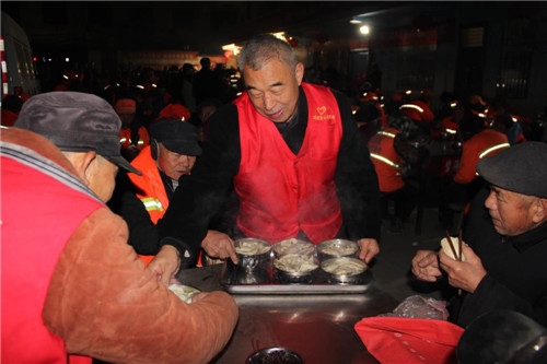 “環(huán)衛(wèi)工人平均年齡都在60歲以上,牙口不好,是‘愛(ài)心粥屋’和志愿者給我們精心調(diào)制的雞蛋韭菜餡餃子,味鮮、好吃、正合老年人的口味,感謝黨、感謝志愿者不畏寒冷、不怕辛苦給我們端吃端喝,就是在家也沒(méi)有這么好的待遇。”環(huán)衛(wèi)工人李大娘感激地說(shuō)。