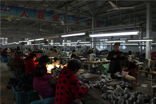 “在這里每個月可以掙3000多元,雖不如沿海城市掙的多,但從家里到廠里騎車幾分鐘就到,不影響做飯、照顧家。”秦梅英是鹿邑縣楊湖口鎮(zhèn)超琪鞋業(yè)扶貧車間對口幫扶貧困戶,因兩個孩子小再加上丈夫兩年前得抑郁癥需要照顧,所以不能外出務(wù)工,因此格外珍惜家門口這份工作。