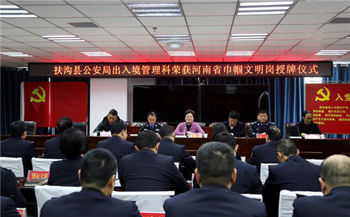 任松奎在儀式上指出,近年來(lái),全縣公安機(jī)關(guān),聚焦主業(yè),服務(wù)大局,恪盡職守,不辱使命,在平安扶溝建設(shè)中發(fā)揮了至關(guān)重要的作用,靠實(shí)力實(shí)績(jī)榮獲“全省優(yōu)秀公安局”“河南省人民滿意的公務(wù)員集體等多項(xiàng)榮譽(yù)。近期,出入境管理科又獲得省級(jí)“巾幗文明崗”這一殊榮,這既是出入境管理科的榮譽(yù),也是公安機(jī)關(guān)的榮譽(yù),更是全縣的榮譽(yù)。