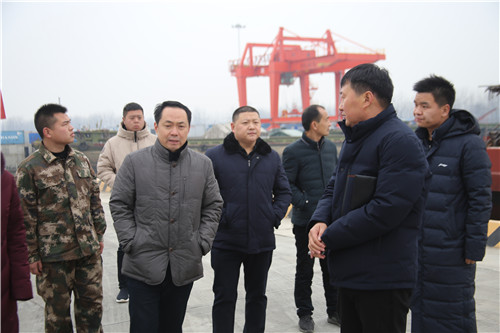 在周口中心港碼頭,程若光向負(fù)責(zé)人了解當(dāng)前港口碼頭設(shè)備的運(yùn)轉(zhuǎn)運(yùn)行情況后,要求港口碼頭要在確保安全生產(chǎn)的情況下開展各項(xiàng)工作。