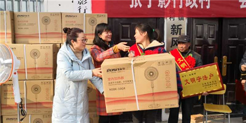 太康縣商務(wù)局為38戶受表彰的先進(jìn)家庭頒發(fā)了獎牌和價值300元的電熱扇。
