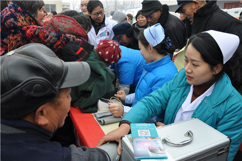 正在排隊(duì)量血壓的馬河村村民馬長運(yùn)說:“我今年70多歲,血壓有點(diǎn)高,聽說這 里有義診活動,一大早便來這里等待了?!?/p>