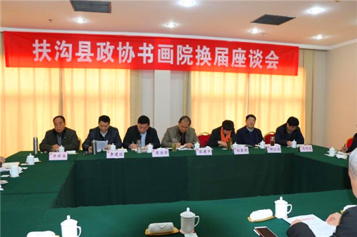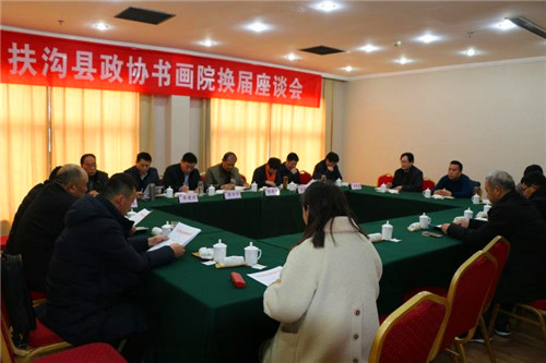 1月11日上午,扶溝縣政協在中匯七樓會議室召開書畫院換屆工作座談會,縣政協主席張建中、副主席孫春花、桑法旺、郝寶杰、李建設,離退休的老領導周明選、單新春,縣政協各委室主任和社會各界書畫藝術人士,參加書畫院換屆工作座談會,座談會由縣政協副主席李建設主持。