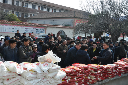 當日上午,愛心企業(yè)商水建業(yè)為500個家庭送來了米面油等過年物質(zhì),河南省越調(diào)劇團為農(nóng)民帶來精彩的戲曲演出,剛剛參加全省“紅色文藝輕騎兵”慰問演出回到周口的申小梅女士為村民表演了群眾耳熟能詳?shù)摹妒战獋ァ愤x段。