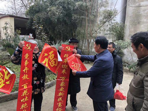 據(jù)了解,當(dāng)天下午時(shí)莊村黨支部訂制的3000多套春聯(lián),免費(fèi)贈(zèng)給448戶村民。記者看到,這些春聯(lián)的內(nèi)容都是承載著黨和政府的關(guān)懷,有的是歌頌改革開(kāi)放的,有的是幸福報(bào)黨恩的。該村村民朱在靈領(lǐng)到春聯(lián)后立刻把春聯(lián)拿回家,他將門頭擦干凈后把春聯(lián)貼了上去。在門口懸掛著的國(guó)旗的襯托下,顯得格外喜慶。“村里免費(fèi)發(fā)這種帶黨徽的春聯(lián)已經(jīng)第三年了,這種春聯(lián)傳遞了黨的好聲音,推動(dòng)了群眾對(duì)黨的擁護(hù),現(xiàn)在村民的精神面貌也貌煥然一新。”朱在靈高興地說(shuō)。
