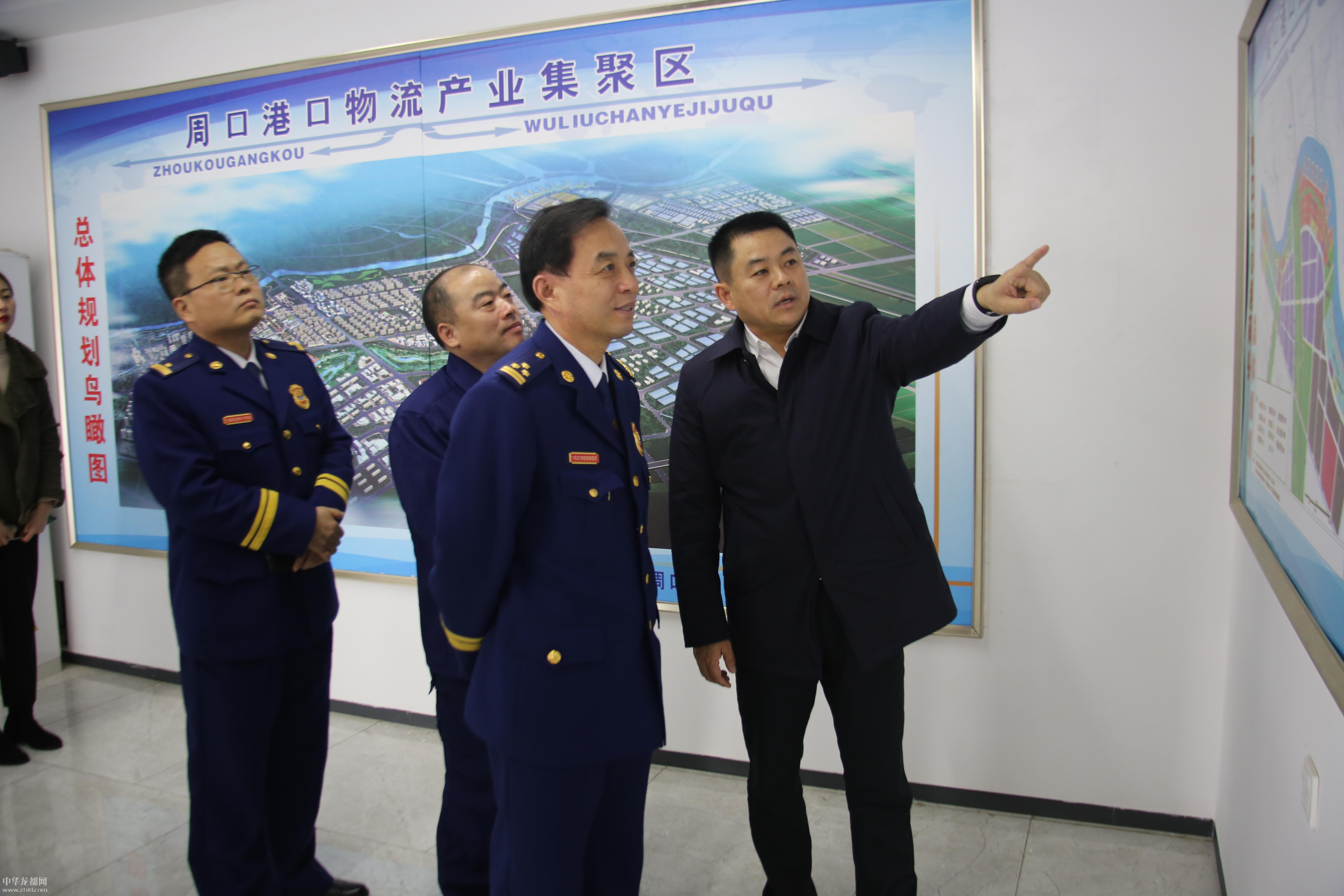 在周口中心港碼頭,張修棟首先來到碼頭運營辦多媒體室,聽取了孫紅偉書記關于沙潁河航運及通航能力,周口港規(guī)劃建設,港區(qū)規(guī)劃、建設與未來發(fā)展等情況的詳細介紹,觀看了《以港促城》宣傳片。并到碼頭港池邊了解停泊貨船載貨能力,碼頭運營貨物品種,吞吐量等情況。