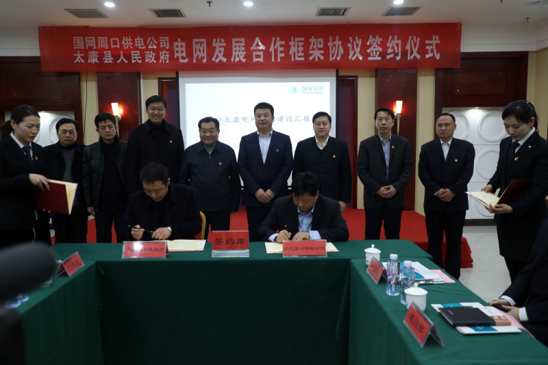 2月13日,太康縣人民政府與周口市供電公司舉行電網(wǎng)發(fā)展合作框架協(xié)議簽約儀式。周口市供電公司總經(jīng)理郭雷、副總經(jīng)理靳玉林,紀(jì)委書(shū)記、工會(huì)主席張浩,太康縣領(lǐng)導(dǎo)王國(guó)璽、董鴻、喬偉等出席簽約儀式??h委常委、縣委辦公室主任董鴻主持簽約儀式。