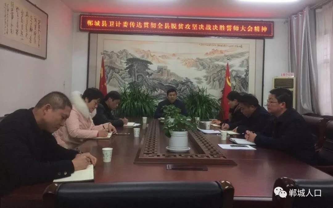 2月13日,鄲城縣脫貧摘帽決戰(zhàn)決勝誓師大會在縣人民會堂隆重召開。下午,縣衛(wèi)計委及時組織召開了委全體班子成員工作會,會議認真?zhèn)鬟_學(xué)習(xí)了全縣脫貧摘帽決戰(zhàn)決勝誓師大會精神,重點學(xué)習(xí)了縣委書記羅文閣、縣長李全林等領(lǐng)導(dǎo)在大會上的重要講話精神,同時對全縣衛(wèi)生計生系統(tǒng)2019年脫貧攻堅重點工作任務(wù)作了統(tǒng)一安排部署。