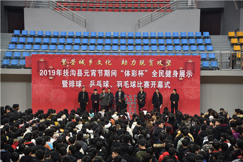2月17日上午,元宵佳節(jié)即將來臨之際,在全縣脫貧攻堅沖刺的關(guān)鍵時期,扶溝縣2019年元宵節(jié)“體彩杯”全民健身展示暨排球、乒乓球、羽毛球比賽活動在縣體育館隆重開幕。活動旨在豐富全縣廣大人民群眾的文化生活,助力脫貧攻堅,為實現(xiàn)“五個扶溝”增光添彩。縣委常委、宣傳部長馬昭才,副縣長吳興華等出席開幕式??h委宣傳部副部長張根主持開幕式。