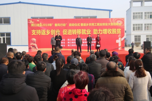 為了進一步促進港區(qū)農(nóng)村勞動者和貧困勞動力轉(zhuǎn)移就業(yè),支持農(nóng)民工等人員返鄉(xiāng)下鄉(xiāng)創(chuàng)業(yè),全面落實轉(zhuǎn)移就業(yè),滿足企業(yè)及其他單位用人需求,3月6日,周口港區(qū)舉辦2019年“春風(fēng)行動”啟動儀式暨返鄉(xiāng)農(nóng)民工轉(zhuǎn)移就業(yè)大型招聘會,為用人單位和務(wù)工人員牽線搭橋。