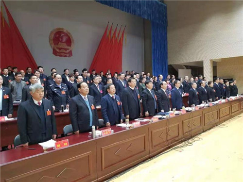 上午8點(diǎn)30分,大會主席團(tuán)常務(wù)主席皇甫立新宣布大會開幕,與會人員全體起立,會場響起雄壯的國歌聲。