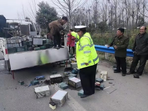 3月13日下午14時(shí)45分,鄲城縣交警大隊(duì)治超中隊(duì)民警張鑫帶隊(duì)在汲冢萬樓卡點(diǎn)執(zhí)勤時(shí),一名女司機(jī)將車輛停靠在萬樓卡點(diǎn),急急忙忙下車向張鑫求助,稱在萬樓執(zhí)勤卡點(diǎn)東2公里路北處,一輛拉有電瓶的貨車因電瓶連線導(dǎo)致后車廂著火,司機(jī)和同行人員急得在路邊直哭。