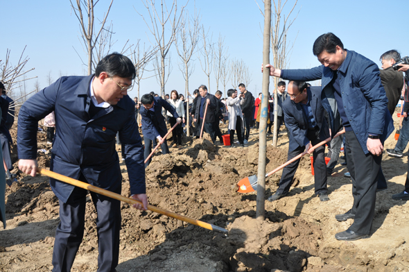 開工儀式結(jié)束后,與會(huì)領(lǐng)導(dǎo)在森林公園項(xiàng)目所在地參加植樹造林活動(dòng),為森林公園植上第一片新綠。