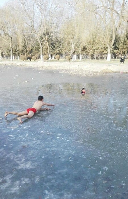 去年1月1日,甘肅省金昌市龍泉公園內(nèi)一名6歲男孩墜入湖中冰窟。在附近游玩的王保華見狀,毫不猶豫地脫掉厚重的冬衣,只剩一條紅褲頭,躬身走上了冰面。接近男孩時(shí),他匍匐在冰面上,在同伴的幫助下,奮力把編好的藤條遞向在水中掙扎的男孩 。在其他愛心人士的共同幫助下,男孩最終獲救,而王保華與同伴悄悄離開了。事后,中央電視臺等媒體紛紛報(bào)道了此事,一時(shí)間,“紅褲頭”救人的事跡,在那個(gè)寒冷的冬天引起了強(qiáng)烈反響。
