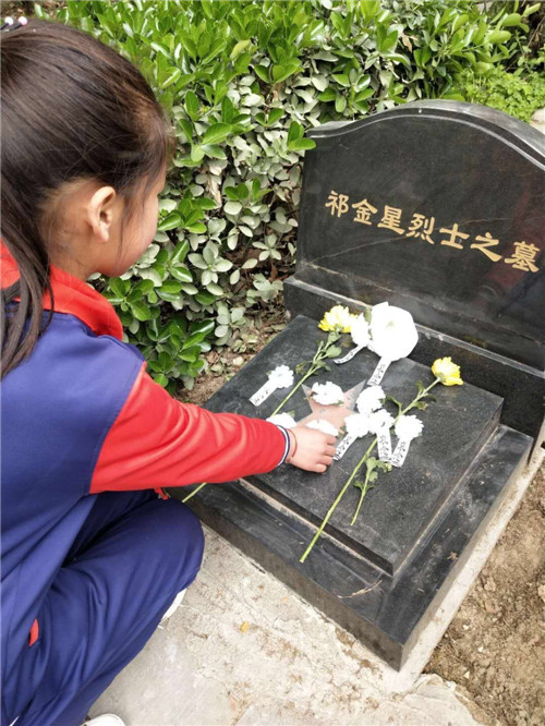 活動中,全體人員懷著崇敬的心情向英雄墓碑敬獻(xiàn)了小白花。