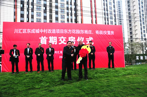據介紹,東成城中村改造項目是2014年豫港經貿洽談會重點簽約的5個項目之一,是省、市重點棚戶區(qū)改造項目,涉及川匯區(qū)、經濟技術開發(fā)區(qū)2個辦事處3個行政村,總占地4300多畝,其中川匯區(qū)七一路辦事處東楊莊行政村1700多畝。當天交付的東方花園安置房是東楊莊、楊廟安置區(qū)項目,該項目占地102.7畝,總建筑面積23.6萬平方米,總投資6.52億元,建設安置房2010套,同時配建幼兒園1所、地下地上車位1600個、社區(qū)及商業(yè)服務用房1.8萬平方米。該項目于2016年10月26日正式開工建設,經過30個月的緊張施工,其中1棟樓208套房達到交付條件正式向回遷群眾交付。預計到7月1日,將再交付6棟樓1112套房,明年“五一”,整個安置區(qū)將全部交工。