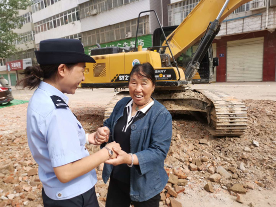 “創(chuàng)衛(wèi)不留死角,想盡辦法也要給市民良好的出行體驗(yàn)?!笔泄簿终匍_黨委會(huì)議專題研究建新路西段附近居民出行問題,發(fā)出“克服困難、自掏腰包、推倒違建、平整道路”的指令,號(hào)召全警幫助居民實(shí)現(xiàn)安全出行。“這些民警、社區(qū)干部都跟我的孩子差不多大,看著他們頂著大太陽清理雜物,夜里還在加班加點(diǎn)工作,我給他們說‘孩子來家喝口水,吃個(gè)飯’他們都笑著拒絕了。真感謝他們,也心疼他們?!闭f起“創(chuàng)衛(wèi)”以來,市公安局民警和社區(qū)干部的工作,70多歲的智老太眼含熱淚。