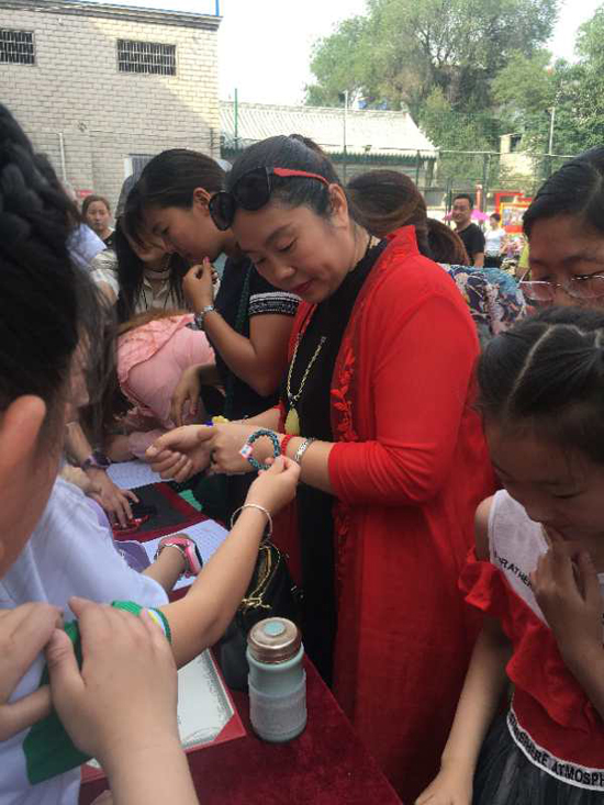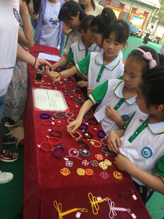 5月25日上午,沈丘縣中國結(jié)第七代傳承人李?;ㄗ哌M(jìn)槐店鎮(zhèn)回民小學(xué),和學(xué)?!爸袊Y(jié)”手工編織興趣班的20名學(xué)生舉行“愛心義賣,情暖校園”主題活動(dòng)。不到半小時(shí),100多件作品被搶購一空還預(yù)定了很多。據(jù)悉,這次義賣共得到1200余元,將全部捐給“槐店鎮(zhèn)中心學(xué)校教育基金”,用來資助該鎮(zhèn)經(jīng)濟(jì)困難師生、獎(jiǎng)勵(lì)優(yōu)秀教師和學(xué)生、資助教育教研等重大活動(dòng)項(xiàng)目。