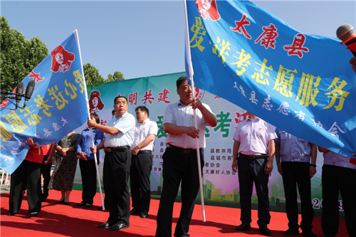 啟動儀式上,縣委宣傳部常務(wù)副部長趙勇、文廣旅局長王擁軍分別向縣直機(jī)關(guān)志愿服務(wù)團(tuán)隊和社會“愛心車”志愿服務(wù)團(tuán)隊代表授“2019愛心送考志愿服務(wù)隊旗”。縣委網(wǎng)信辦主任張照營向大型公益活動致辭。城管局、愛心車主代表、愛心志愿者代表分別發(fā)言。