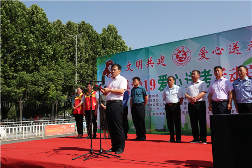 六月麥?zhǔn)焓锵悖瑦坌乃涂加制鸷健?月4日上午,由太康縣委宣傳部、縣文明辦主辦,縣委網(wǎng)信辦、縣城管局、縣住建局、縣教體局、縣公安局、縣文廣旅局承辦的“文明共建 愛心送考”公益活動正式啟動。縣委常委、宣傳部長謝成營出席活動并講話。