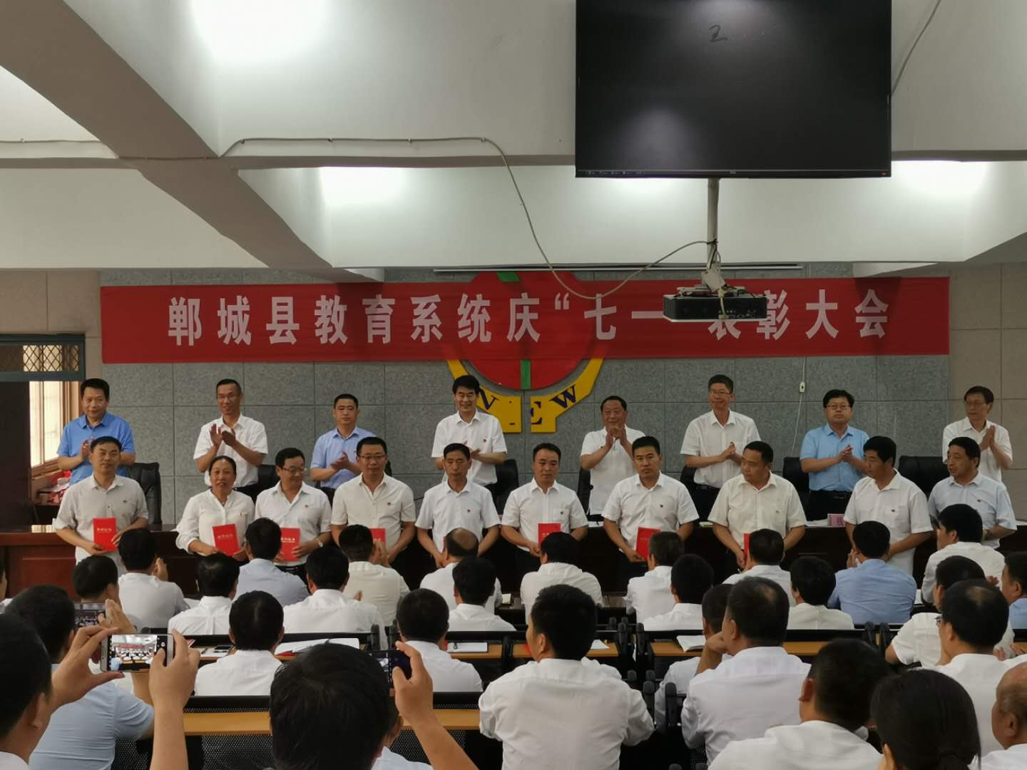 6月26日下午,鄲城縣教育系統(tǒng)慶“七一”表彰大會召開。縣教體局黨組書記、局機關(guān)黨委書記、局長劉現(xiàn)營出席會議并講話。局黨組成員、副局長張祥增主持會議。
