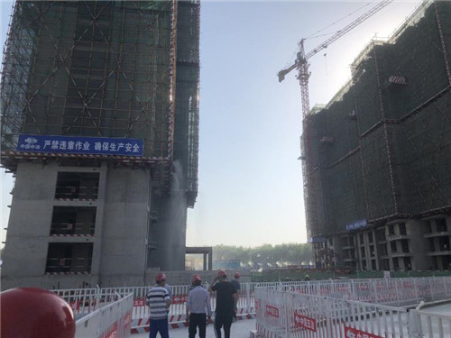 當日下午,記者在金海嘉苑3標段施工現(xiàn)場看到,高聳入云的塔吊有條不紊地作業(yè),施工車輛不時進出,施工人員揮汗如雨緊張施工,一派忙碌的施工景象。工地環(huán)保措施也相當?shù)轿?,樓層噴淋激起水霧彩虹,圍擋及通道噴淋霧狀灑水,車輛進出必須清洗。在項目入口施工顯示牌上,噪音、揚塵等指標均嚴格控制在標準區(qū)間內(nèi)。