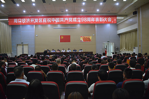 本報訊(記者 王泉林) 6月28日,開發(fā)區(qū)舉行慶祝中國共產(chǎn)黨成立98周年表彰大會。開發(fā)區(qū)黨委書記王文峰為開發(fā)區(qū)黨員干部上黨課,開發(fā)區(qū)管委會主任劉濤主持會議,領(lǐng)導班子成員谷靜、于杰、趙愚、王靜及太昊路公安分局政委劉振國出席會議。