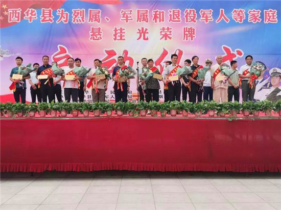 “八一”建軍節(jié)前夕,西華縣啟動了軍人軍烈屬懸掛光榮牌儀式、2019年義務(wù)兵家庭優(yōu)待金發(fā)放儀式。營造“一人當兵、全家光榮”的良好氛圍,共同鞏固人民軍隊的“鋼鐵長城”。