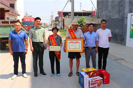 縣人武部、退役軍人事務(wù)局、雙擁辦等相關(guān)單位,通力協(xié)作,深入全縣465個行政村(居委會),為軍人軍烈屬發(fā)放光榮牌、義務(wù)兵家庭優(yōu)待金發(fā)放。截至目前,全縣23000多“軍人軍烈屬光榮牌”,已經(jīng)發(fā)放到戶到人。在“軍人軍烈屬光榮牌”發(fā)放中,奉母鎮(zhèn)奉三村現(xiàn)役軍人李中州榮立二等功,縣人武部、退役軍人事務(wù)局、雙擁辦組織到李中州家掛光榮牌并送喜報,看望慰問李中州的父母。李中州的父親說:“中州在部隊已服役20多年,曾多次獲得三等功,這次又榮獲二等功,這是黨和軍隊培養(yǎng)的結(jié)果。今天縣領(lǐng)導(dǎo)來家慰問我們,感謝黨和政府對我家的關(guān)心照顧,我們將囑咐孩子努力工作,為軍隊事業(yè)再做貢獻,為家鄉(xiāng)爭光添彩。”