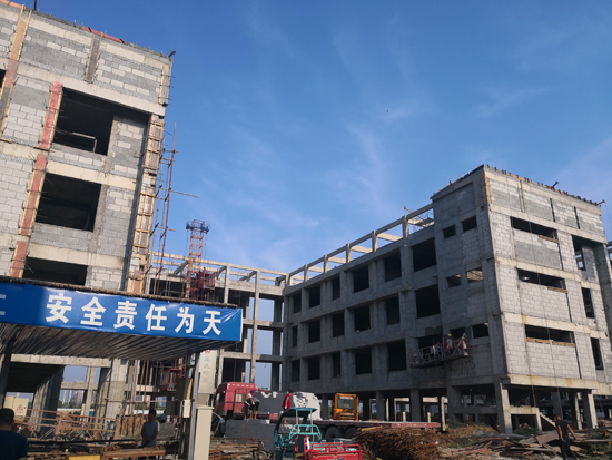 當(dāng)日上午,記者在施工現(xiàn)場看到,雖然天氣炎熱,但是每項工程都進(jìn)展有序,部分已經(jīng)封頂?shù)臉欠空谶M(jìn)行后續(xù)施工,未封頂?shù)臉欠恳舱诰o張施工中,整個施工現(xiàn)場電鉆聲、切割聲此起彼伏,一派熱烈的施工景象。