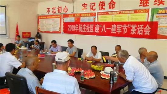 7月28日,根據(jù)慰問(wèn)預(yù)案,9個(gè)社區(qū)分別召開了退役軍人茶話會(huì),退役軍人參加人數(shù)達(dá)276人,回憶起當(dāng)年軍旅生涯中的點(diǎn)點(diǎn)滴滴,暢談現(xiàn)在幸福美好生活,共話創(chuàng)衛(wèi)、棚改等關(guān)乎群眾生活的惠民工程,暢想全縣交通格局大提升的美好未來(lái),氣氛熱烈濃厚。廣大退役軍人表示,“退伍不褪色”,秉承軍隊(duì)的光榮傳統(tǒng),在不同的崗位上繼續(xù)發(fā)光發(fā)熱,不遺余力的工作回報(bào)這個(gè)美好的新時(shí)代,廣大年輕干部表示要以他們?yōu)榘駱?,培養(yǎng)自己刻苦耐勞、甘于奉獻(xiàn)的優(yōu)秀品德,更好的服務(wù)于工作、服務(wù)于群眾。另外,該辦事處還對(duì)443名退役軍人進(jìn)行短信慰問(wèn)。