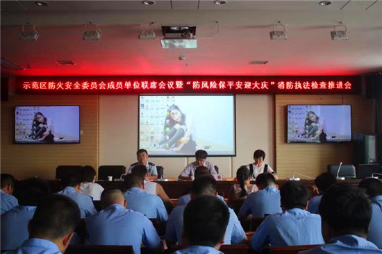 8月6日下午,市城鄉(xiāng)一體化示范區(qū)組織召開全區(qū)“防風(fēng)險(xiǎn)保平安迎大慶”消防安全執(zhí)法檢查專項(xiàng)行動(dòng)工作推進(jìn)會(huì)。區(qū)管委會(huì)副主任張曉、應(yīng)急管理局局長劉婧、消防救援大隊(duì)大隊(duì)長高磊出席會(huì)議。