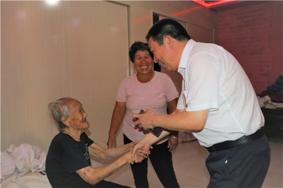 此時,張廣友岳母(一位年近九十的老人)正在內(nèi)室休息,聽到閆書記的到來,堅持從床上坐起,對閆立超一行的到來表示感謝,對黨和政府的關(guān)心關(guān)懷表示感謝。閆立超親切地握住老人的手,對她噓寒問暖,向她表示黨和政府是不會忘記她們的,要她們樹立起對生活的信心,讓她們相信生活會越來越好。