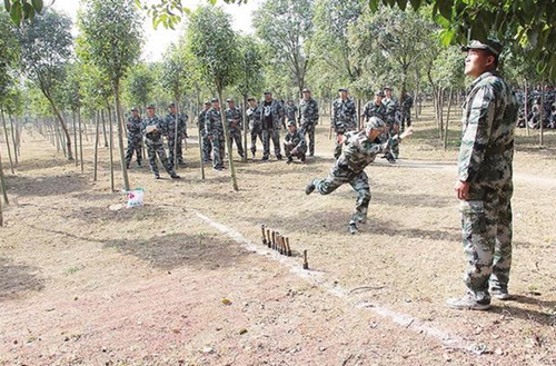 民兵應(yīng)急分隊在進行手榴彈投擲訓練