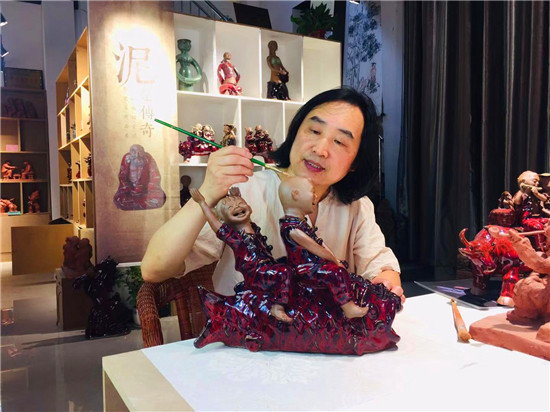 張振福鈞瓷泥塑作品《年年有余》由張振福設(shè)計(jì)、造型、上釉色、燒制,采用傳統(tǒng)的泥塑造型,線條圓潤(rùn)流暢,型制古樸喜慶、大氣雄渾。瓷質(zhì)為禹州神后鈞瓷礦泥,瓷質(zhì)厚重,窯變自然豐富,以喜慶的鈞紅釉色為主色調(diào)。作品運(yùn)用夸張的手法,表現(xiàn)中原黃河岸邊的兒童騎在黃河鯉魚上,男孩牽著繩索,女孩高興地手舞足蹈,畫面極具張力,動(dòng)感十足。男孩女孩代表中華民族興旺發(fā)達(dá),黃河鯉魚代表祖國(guó)繁榮昌盛,人民富足有余。作品長(zhǎng)39厘米、寬30厘米、高33厘米,象征21世紀(jì)家國(guó)興旺,九州飛彩。