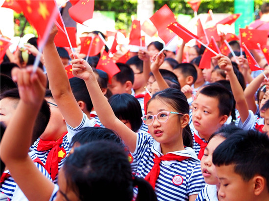 “我和我的祖國,一刻也不能分割……”9月6日上午,長沙市未成年人“傳承紅色基因 向國旗敬禮”主題教育實踐活動啟動儀式在芙蓉區(qū)大同小學正式舉行,伴隨著《我和我的祖國》的美妙旋律,上千名青少年齊聲高歌,鮮艷的五星紅旗一起舞動,匯成一片紅色的海洋。