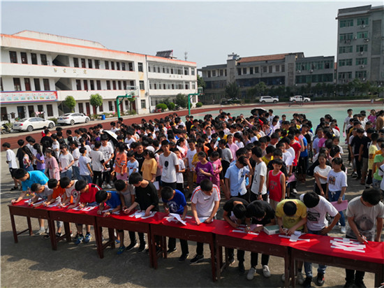 7月2日,沼山中學(xué)師生齊聚學(xué)校操場,舉行“小手拉大手 同創(chuàng)文明城”活動啟動儀式?;顒蝇F(xiàn)場,同學(xué)們整齊列隊(duì),依次上前,鄭重地在橫幅上簽上自己的名字,吹響學(xué)校新一輪創(chuàng)建攻堅(jiān)號角。