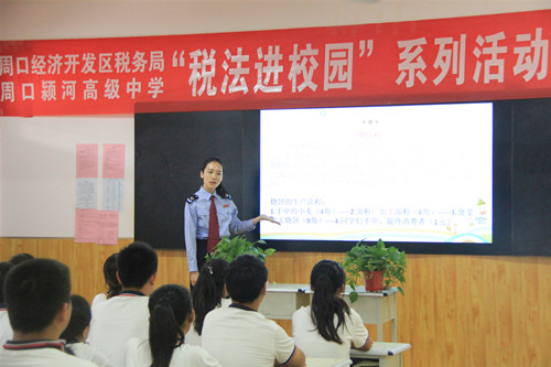 9月10日上午,開發(fā)區(qū)稅務(wù)局的稅務(wù)干部走進(jìn)周口市潁河高中,為同學(xué)們帶去了生動(dòng)有趣、寓教于樂的“開學(xué)第一課”,通過PPT展示以及動(dòng)畫短片將稅收知識(shí)融入教學(xué)活動(dòng),啟迪學(xué)生深入了解稅收工作,增強(qiáng)青少年對(duì)稅收取之于民、用之于民的認(rèn)識(shí)。
