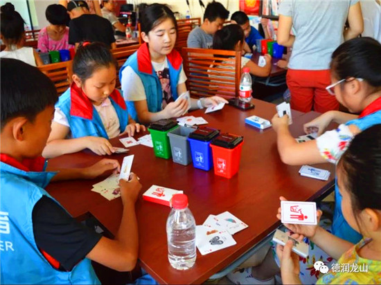 本次活動邀請北京市家庭教育研究會副秘書長劉國平老師為孩子們講課。劉老師首先從垃圾對生活的影響,垃圾分類的好處及各類垃圾如何分類三個方面做了詳細的講解。然后讓小朋友分組進行垃圾分類的實操演練,每組都分到四個垃圾桶和兩幅撲克牌,孩子們按撲克牌上內(nèi)容進行垃圾分類,分類過程中孩子們進行了熱烈的討論,分類結(jié)束后每組孩子們都展示了自己的勞動成果,通過自己動手快速掌握垃圾分類的要領(lǐng)。