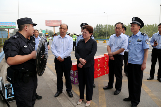 離70年大慶越來越近,喜慶的氣氛越來越濃,一線執(zhí)行安保工作的公安民警肩上的擔子也越來越重。9月24日下午,扶溝縣領(lǐng)導(dǎo)張穎波、詹凱、朱良杰、王霄靈及縣公安局局長田豪杰等,來到鹽洛高速扶溝站親切看望在此執(zhí)勤的公安民警。