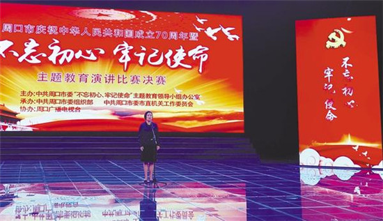 開發(fā)區(qū)積極響應(yīng)號召,組織人員參加全市慶祝中華人民共和國成立70周年暨“不忘初心、牢記使命”主題教育演講比賽。開發(fā)區(qū)機關(guān)第一黨支部黨員李媛媛經(jīng)過激烈角逐,順利進入決賽。記者 王泉林 攝