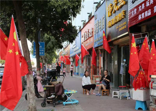 9月28日上午,記者來到紫氣大道、游客中心、上清湖、閆溝河、明道宮景區(qū)等地,看到臨街店鋪、文化中心廣場(chǎng)以及紫氣大道等主干道兩側(cè)路燈桿上懸掛的國(guó)旗隨風(fēng)飄揚(yáng),街頭游園內(nèi)擺滿了造型不一的鮮花盆景,大街小巷披上節(jié)日盛裝,老子故里人用行動(dòng)祝福祖國(guó),愿祖國(guó)明天更美好。