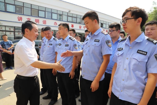 9月30日,正值新中國(guó)成立70周年大慶安保決勝?zèng)Q戰(zhàn)的關(guān)鍵時(shí)期,港區(qū)分局全體人員日夜堅(jiān)守在安保維穩(wěn)工作一線。為鼓舞士氣,凝聚警心,當(dāng)天上午,港區(qū)管委會(huì)主任程若光帶領(lǐng)區(qū)領(lǐng)導(dǎo)李翔、劉學(xué)慶、李素芹來(lái)到港區(qū)公安分局慰問(wèn)一線民警、輔警。