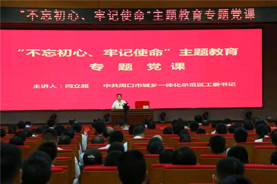會(huì)上,閆立超根據(jù)“不忘初心,牢記使命”主題教育的要求并結(jié)合示范區(qū)的實(shí)際,從四個(gè)方面進(jìn)行了深入淺出地講解。一“不忘初心,牢記使命”是共產(chǎn)黨員永恒的課題。開(kāi)展“不忘初心,牢記使命”主題教育工作是非常必要的,也是非常重要的,主要體現(xiàn)在它是新時(shí)期中國(guó)特色社會(huì)主義思想武裝全黨的需要、它是新時(shí)期黨的建設(shè)的需要、它是保持黨和人民群眾血肉聯(lián)系的需要、它還是落實(shí)十九大提出的明確目標(biāo)任務(wù)的需要。習(xí)近平總書(shū)記告誡我們,無(wú)論走多遠(yuǎn),都不能忘記來(lái)時(shí)的路。二“不忘初心,牢記使命”務(wù)必做到四個(gè)貫徹始終。學(xué)習(xí)教育要貫徹始終;調(diào)查研究要貫徹始終;檢視問(wèn)題要貫徹始終;問(wèn)題整改要貫徹始終。三“不忘初心,牢記使命”要知行合一謀發(fā)展。示范區(qū)新一屆黨工委、管委會(huì)領(lǐng)導(dǎo)班子成立以來(lái),取得了全市人民有目共睹的成績(jī),概括起來(lái)就是“五大突破、一大提升”?!拔宕笸黄啤奔础皟蛇`”治理大突破、棚改征遷大突破、項(xiàng)目建設(shè)大突破、財(cái)稅收入大突破和城市建設(shè)大突破?!耙淮筇嵘奔词痉秴^(qū)各級(jí)干部、人民群眾形象大提升。2017、2018連續(xù)兩年被評(píng)為全市綜合考評(píng)優(yōu)秀等次。四“不忘初心,牢記使命”體現(xiàn)黨的建設(shè)高質(zhì)量。要強(qiáng)化黨的建設(shè),建立、建強(qiáng)各級(jí)黨組織;要健全黨的生活;要加強(qiáng)黨員管理;要體現(xiàn)對(duì)黨忠誠(chéng),對(duì)黨忠誠(chéng)要害在“絕對(duì)”兩個(gè)字,就是唯一的、徹底的、無(wú)條件的、不摻雜任何雜質(zhì)的、沒(méi)有任何水分的忠誠(chéng);要樹(shù)立黨的形象。共產(chǎn)黨員要敢于擔(dān)當(dāng),沖鋒在前,退卻在后,勇于作為,在不同的崗位上做出普通、平凡而又偉大的事業(yè)。