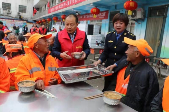 當(dāng)日凌晨5時許,太康縣愛心早餐點(diǎn)人頭攢動,熱鬧非凡,一輛裝滿新鮮蔬菜的大貨車停放在院中,20多名城管志愿者在太康縣城管局局長張愛梅的帶領(lǐng)下正從車上往下卸蔬菜。聽說愛心企業(yè)要為環(huán)衛(wèi)工捐贈蔬菜,太康縣委常委、統(tǒng)戰(zhàn)部長張新棟也放棄節(jié)日休息,天不明趕到太康愛心早餐點(diǎn),加入到蔬菜裝卸行列。“節(jié)日里,縣領(lǐng)導(dǎo)也不忘過來看望我們環(huán)衛(wèi)工,真讓人感動啊。”看著張新棟、張愛梅等人忙前忙后卸蔬菜,臉上浸滿了汗珠,環(huán)衛(wèi)工張大爺?shù)热藙忧榈卣f,“社會上有這么多好人關(guān)心我們環(huán)衛(wèi)工,我們再苦再累也值了!”