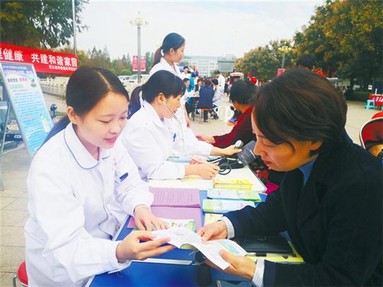 10月10日是世界精神衛(wèi)生日,當(dāng)日上午9時(shí)至11時(shí),周口市衛(wèi)健委組織我市28家醫(yī)院在川匯區(qū)文化廣場(chǎng)舉辦主題為“心理健康社會(huì)和諧,我行動(dòng)”的義診活動(dòng)?;顒?dòng)現(xiàn)場(chǎng),100多名醫(yī)務(wù)人員向群眾提供免費(fèi)疾病咨詢,宣傳普及精神衛(wèi)生健康醫(yī)學(xué)知識(shí),紛紛開出身心健康處方,受到群眾的熱烈歡迎。