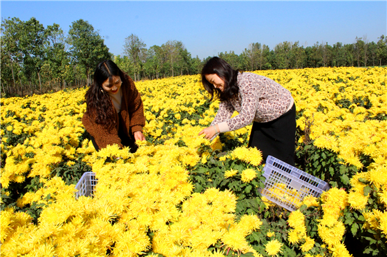 不僅如此,樊慧鵬還投資390多萬元,與朋友一起在沈丘、鄲城、淮陽、扶溝、駐馬店的上蔡縣等地種植菊花2000多畝,年銷售額800余萬元,帶領周邊村民3000余人致富。